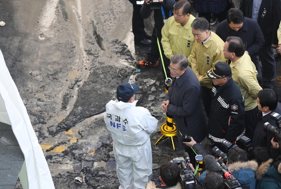 家族を含め首と胴が繋がってないな勤務中の消防士たちに会ったドア大統領は「消防士が最善を尽くしても、結果が良くないとき、国民の叱責を受けることが消防士の宿命」