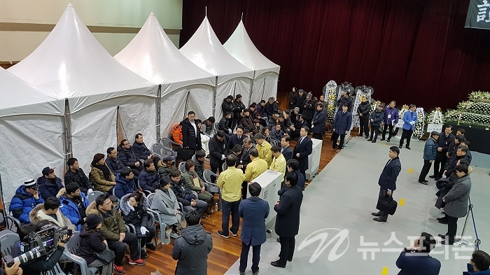 文在寅をお迎えする準備は整った!密陽火災惨事の犠牲者合同焼香所が体育館にオープン