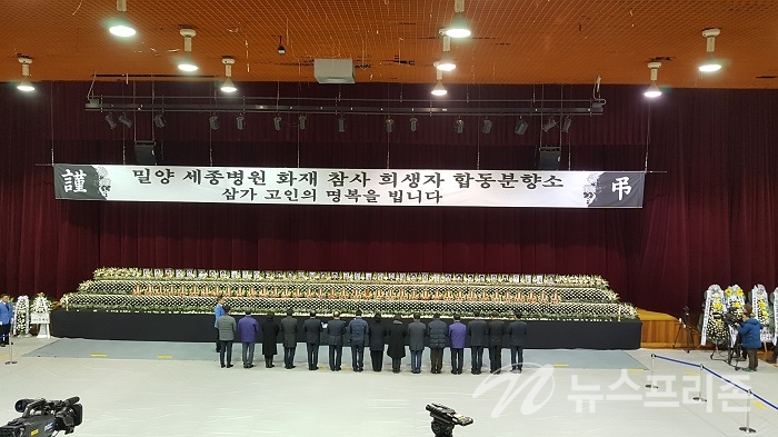 密陽世宗病院で発生した火災惨事死亡者合同焼香所が27日設置された。