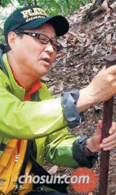 「日帝が打ち込んだ鉄杭と結論を下しましょう。」 鉄杭を凝視したソ・ユンハ(蘇閠夏・65)氏が話した。20年を超えて全国30ヶ所余りで280本の鉄杭を抜いて来た‘鉄杭男’だ。地域の新聞に載った紫山の鉄杭を直接検索して探すほど彼は変わらずに精力的だった。