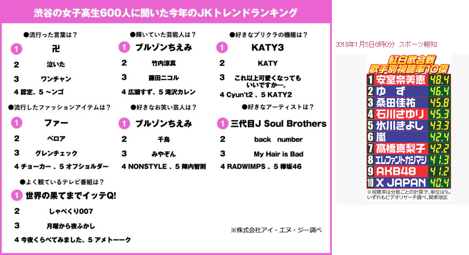 今も「JCJK流行語大賞2017に【韓流】が並んだニダ!」とか言ってるけどさー。