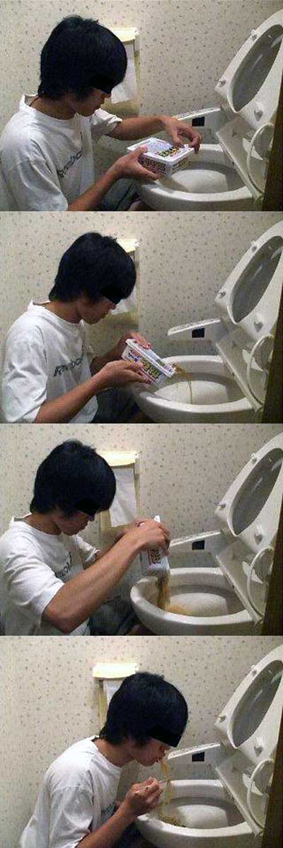 最初から定点カメラで撮影しているから、落として喰う撮影目的。西のスレで「ポグリラーメン」ってのが韓国人にお馴染みらしいだけど、発想がアホ