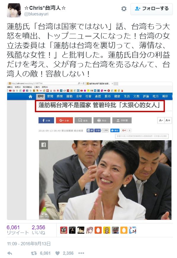 これいいな!シナ工作員女におくってやれや。北京の命令で言っただけなのに、蓮舫が可哀想だ。