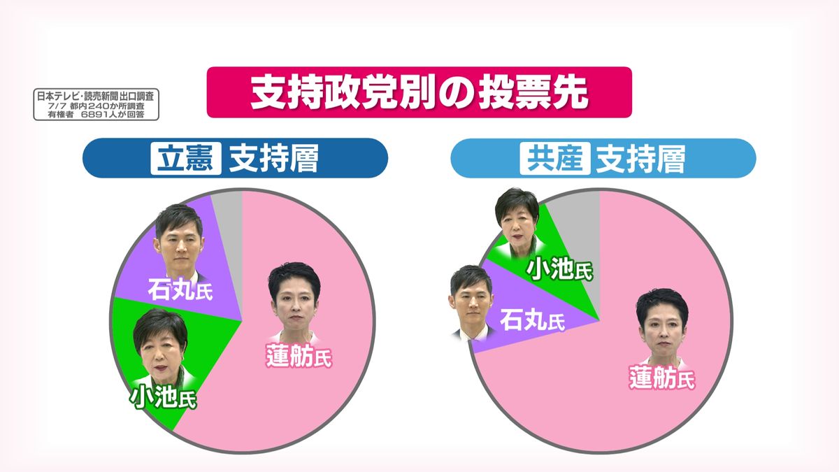 また、所属していた立憲民主党の支持層は6割弱しか固められず、立憲支持層の3割台後半が小池氏と石丸氏の支持に流れてしまいました。