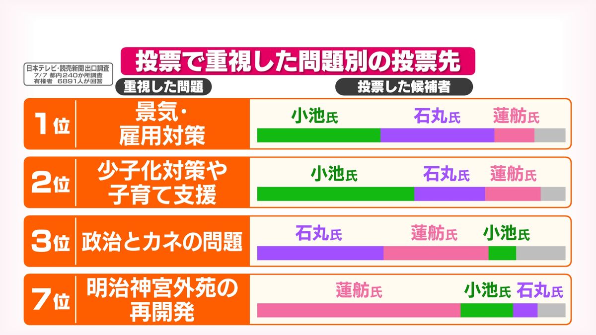 3割台半ばの石丸氏のおよそ半分の支持で、小池氏のおよそ3割にも及びませんでした。