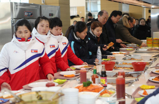 選手村で出された食事を見たときの北朝鮮選手の表情が凍りつく