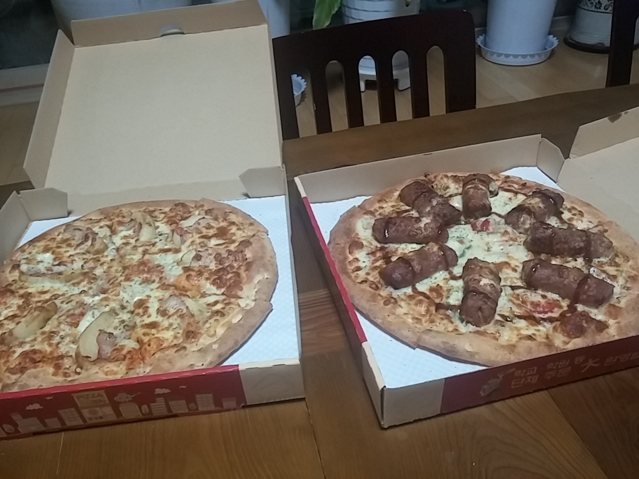 ピザは本当に高い。1枚1500円(16000 KRW)とかする。
