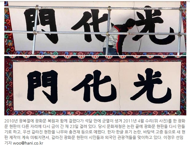文化財庁は、景福宮の復元過程で光化門、迎秋門、香遠亭など扁額の誤りを認めたり交換したりした前例があるが、今回も誤りは繰り返された。