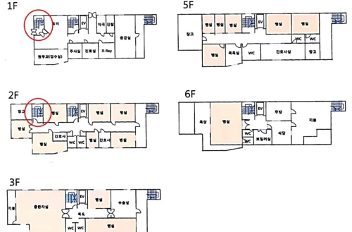 消防署が確保した図面には、1階から5階までの全層がすべて接続された病院の内部中央階段と外階段のほか、正門のすぐ横に補助階段がもう一つあった。