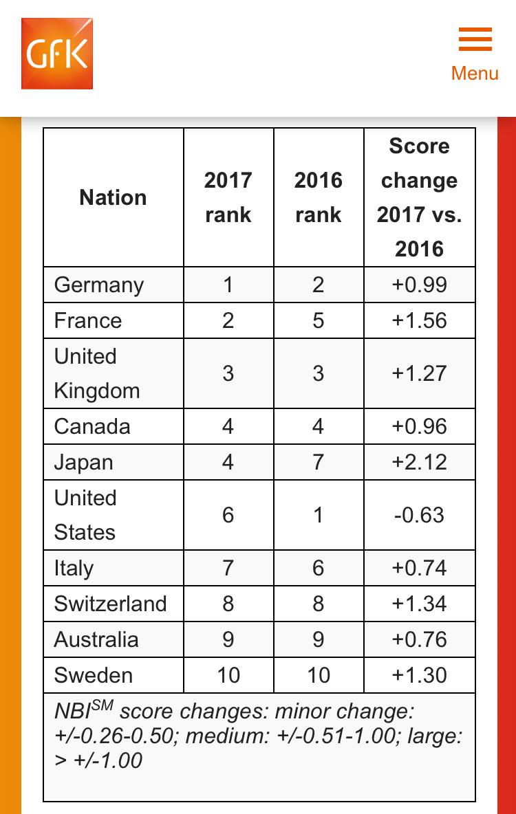国家ブランド指標は、考案したサイモン・アンホルトとGFKの調査
