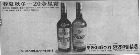 1973년 신문 광고인데, 저기에 Torage라고 써있는... 저 병이 문제의 도라지 위스키입니다.