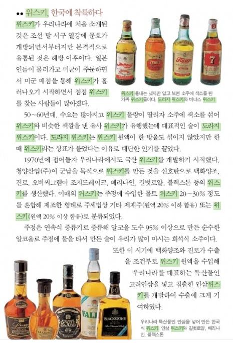 술에 대한 책 내용인데요... 내용을 보면.. 도라지 위스키는 위스키가 한방울도 섞이지 않은... 소주에다 색소 탄 술이라고 하네요.