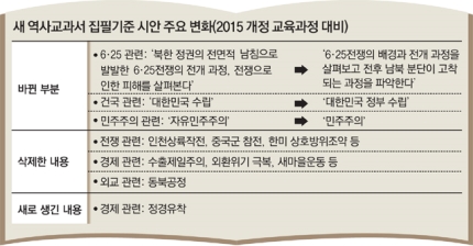 2020年から中学・高校で使用される歴史教科書について、韓国政府が取りまとめた執筆基準試案の内容が明らかになったが、その中で「北朝鮮による6・25(朝鮮戦争)南侵」や「北朝鮮の世襲体制」「北朝鮮の人権」などの用語が全てなくなっていたことが分かった。「6・25南侵」や「北朝鮮の人権」などの用語は盧武鉉(ノ・ムヒョン)政権当時の2007年から10年以上にわたり執筆基準に記載されていた。大韓民国が進むべき方向を「自由民主主義」から「自由」を削除し「民主主義」とのみ規定した与党改憲案の波紋が広がる中、今回新たに教科書の問題まで浮上したのだ。