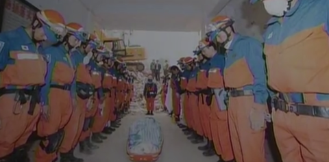 犠牲者に対しては、敬意を払い、隊員が整列し、黙祷をしています。