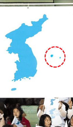 でも表示された独島が小さいので、どれだけの観客が気づいたのかは不明