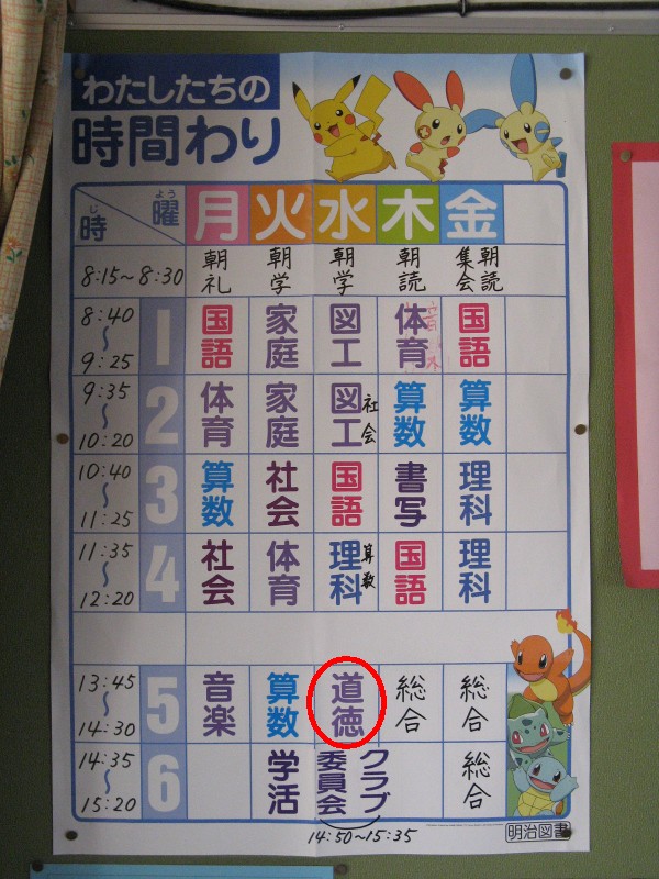 私の卒業した小学校では低学年は1時限目が道徳だった。