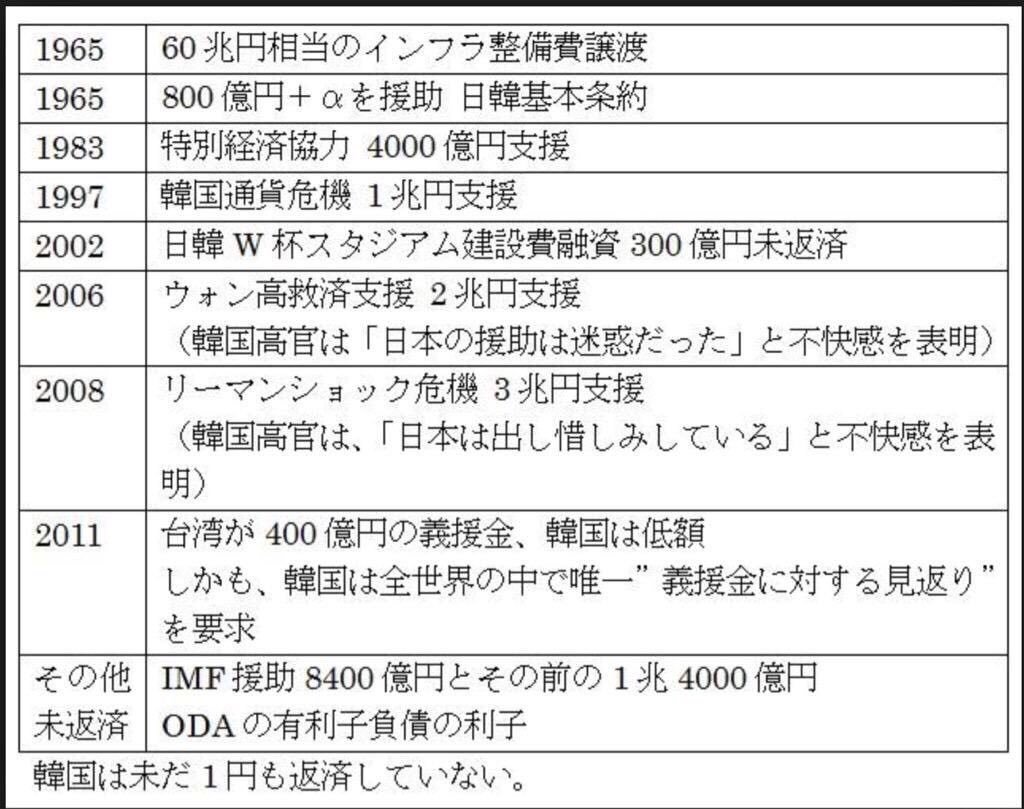 その後も元併合国の韓国ということで多くの経済協力、支援を行った。