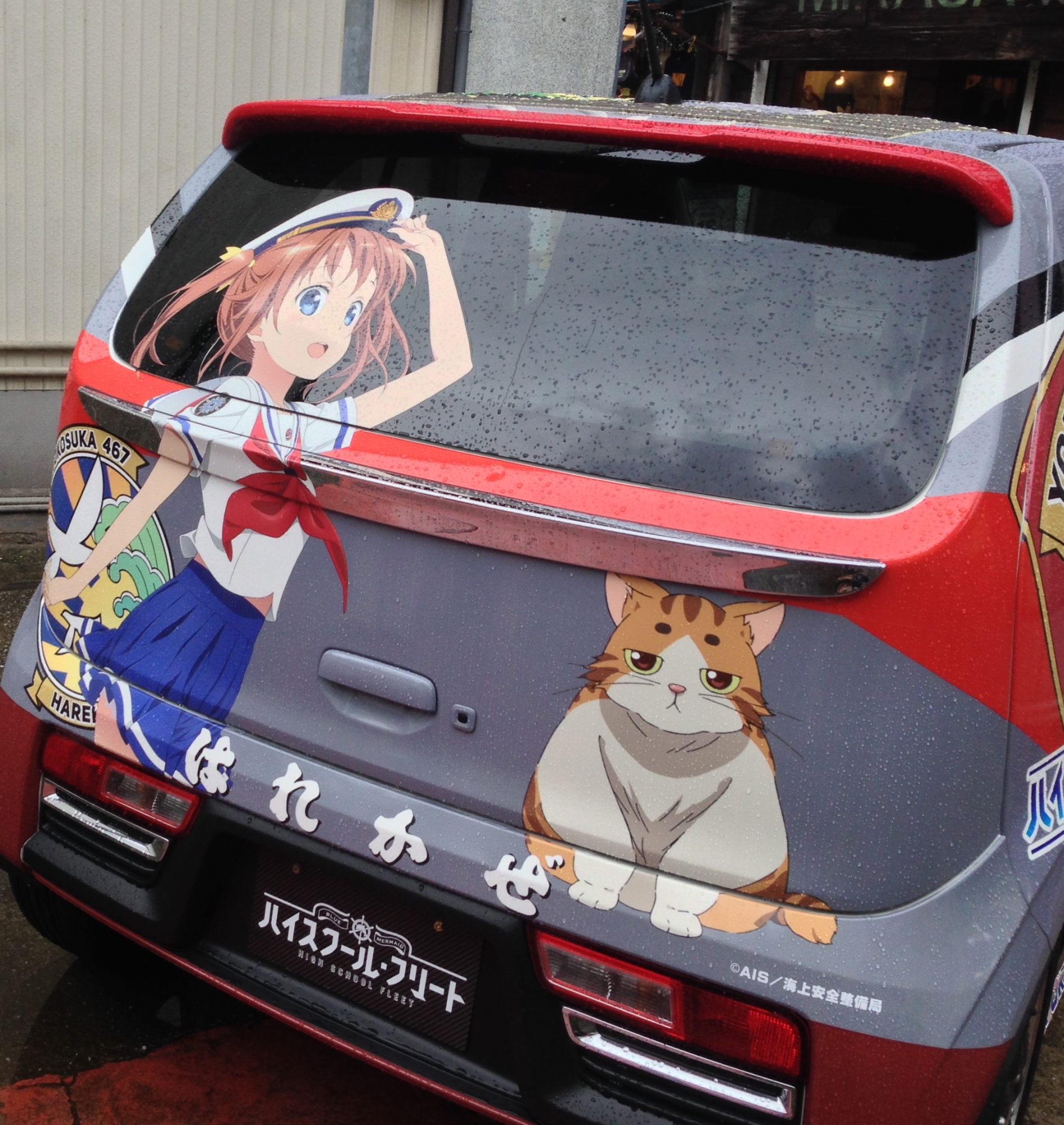 ヒーローだ!それほど多いわけではないけれど、普通に痛車(アニメやゲームの美少女キャラクターの絵でラッピングされている自動車)も見かける。