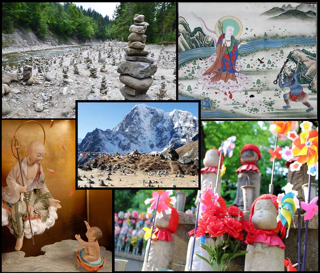 日本では「賽の河原(sai-no-kawara)」が思い出されますね。 左上の画像が、そのイメージです。