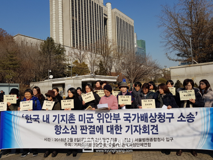 ソウル高裁民事22部(裁判長イボムギュン部長判事)は8日、基地村の米軍慰安婦の女性117人が「基地村を不法に運営し配置などをしたことによる身体的・精神的損害を賠償せよ」と政府を相手に出した訴訟で被告すべての300〜700万ウォンを賠償するよう判決した。54人の基地村婦たちだけ各500万ウォンを賠償するような1審の判決に比べて国の責任を幅広く認めた。