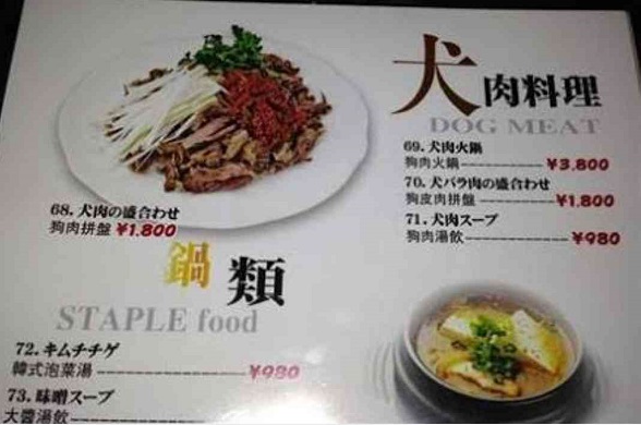 http://www.afpbb.com/articles/-/31617171991年、犬肉、猫肉の「食用流通」が法的に禁止された。