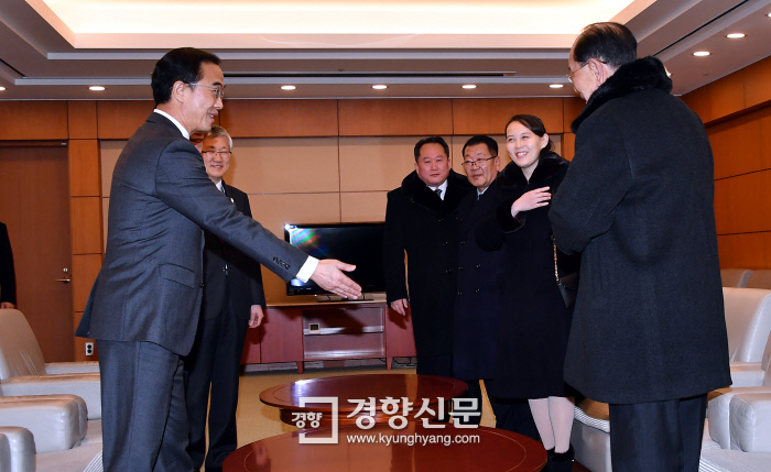 金常任委員長が名目上の国家元首であるが、いわゆる「白頭血統」である金第1副部長に上座を勧めしようとしていたものと思われる。北朝鮮代表団はジョミョンギュン統一部長官、チョンヘソン統一部次官、ナムグァンピョ青瓦台国家アンボシル2次長と歓談した後、仁川空港KTX乗り場に移動した。