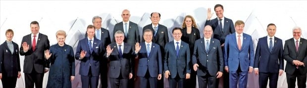 ドア大統領夫妻は同日午後5時30分頃から平昌ブリスヒルズテックで受け入れ行事を持って各国首脳らといちいち挨拶をした後、記念撮影をしました。
