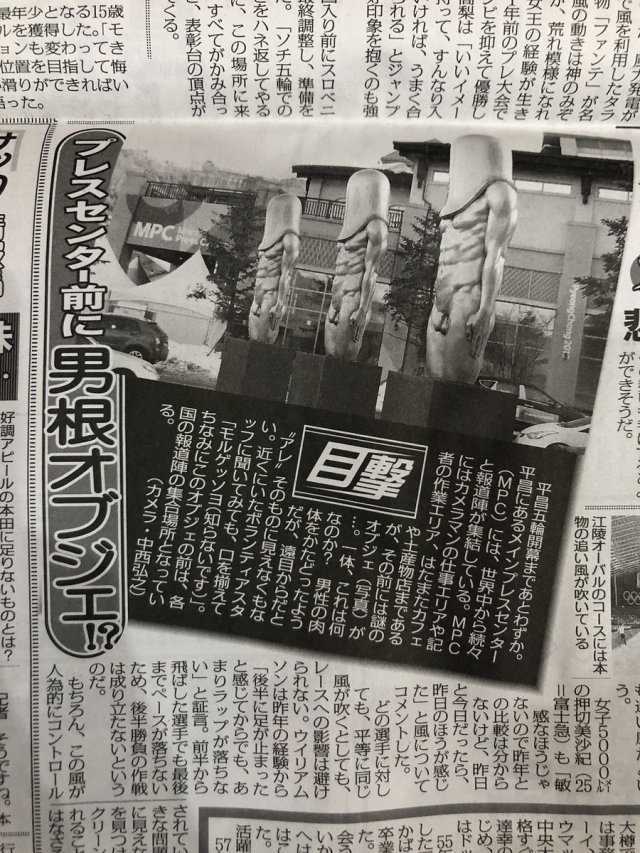 지난 7일 일본 매체 도쿄 스포츠는 “전 세계의 취재진이 모이는 평창 메인 프레스 센터 앞에 수수께끼의 조형물이 있다. 이것은 도대체 무엇인가”라며 “근처에 있던 자원 봉사자들에게 물어봐도 입을 모아 ‘모루겠소요(모르겠어요)’라고 말한다”고 보도했다.
