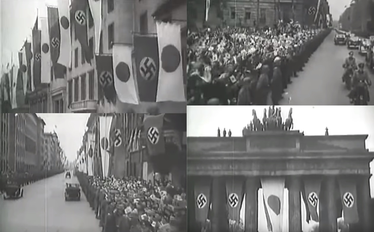 松岡外相が数十万人のドイツ人たちに日章旗を振られて大歓迎されて