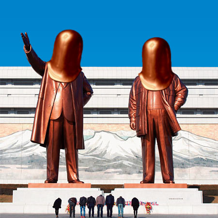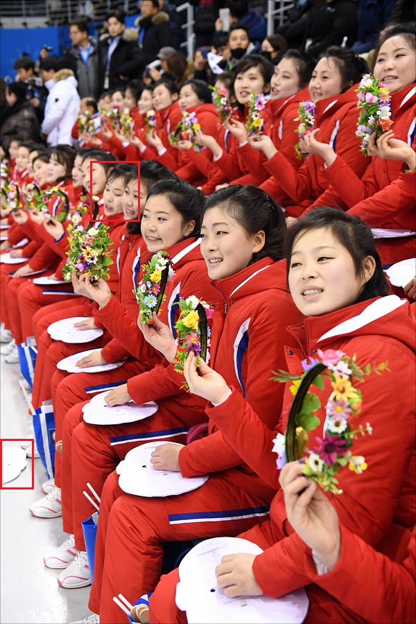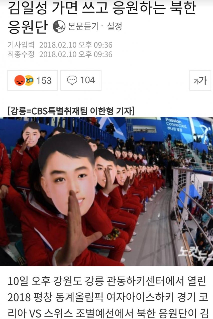 북한 응원단, 김일성 가면 쓰고 응원....한국 네티즌 분노