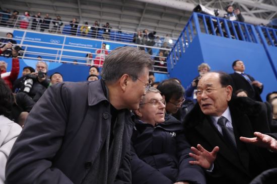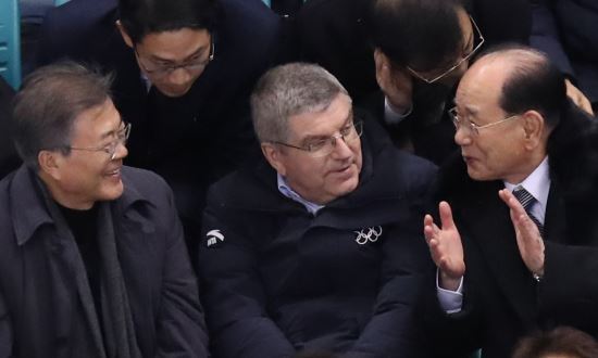 聞き取れない言語をする二人が両脇に座っている。そして中央に座った自分を置いて互いに密接に話を交わす。想像するだけ厄介な状況。10日平昌オリンピックで、このような場面がしばらく演出された。女性アイスホッケーコリア第1戦でムン・ジェイン大統領と金永南最高人民会議常任委員長との間にあったトーマス・バッハIOC委員長の話だ。