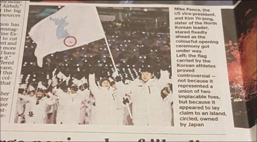 (ロンドン=連合ニュース)ファンジョンオ特派員=米国NBC放送の「韓国卑下妄言」に続き、イギリスの新聞が平昌冬季オリンピックの開会式で、南北選手団が持って共同入場した韓半島旗の写真を説明しながら「独島は日本が所有する島」と報道して物議をかもしている。