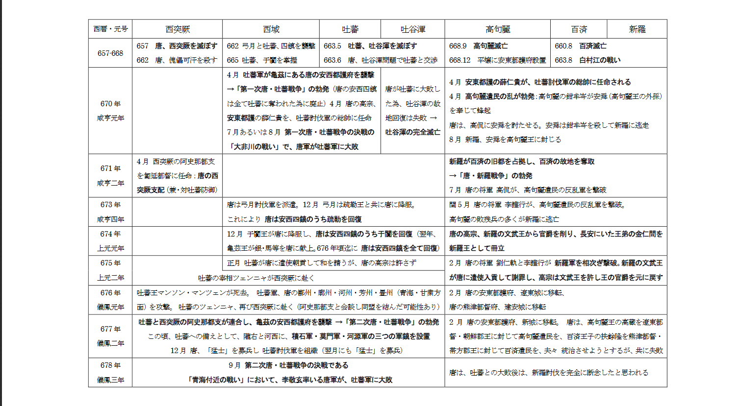 唐が新羅征討を中止したのは結局のところ西方で吐蕃の攻勢に晒されてたから。