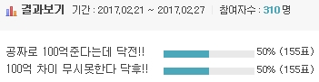 300 명이 투표했는데, 150 vs 150 으로 막상막하이다.