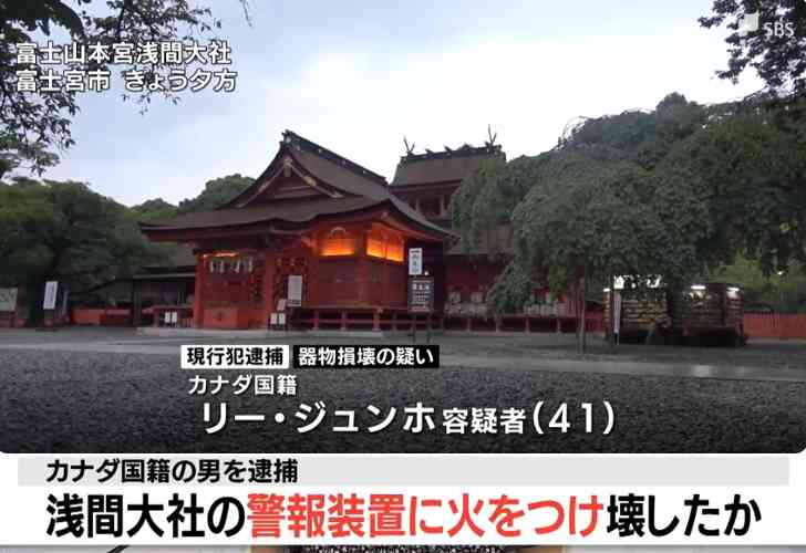 アメリカ行けばやらかしそうだな世界遺産“構成資産”富士山本宮浅間大社の警報装置に火をつけ壊したか カナダ国籍の男を逮捕 日本語で「ころしてやる」=静岡県警