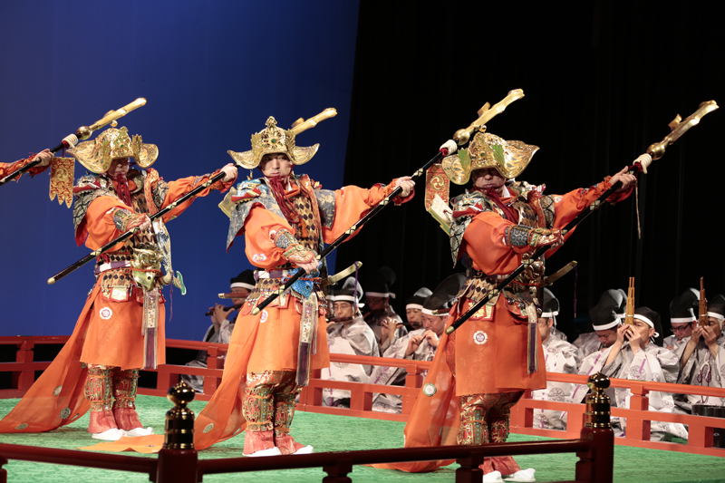 呉の時代に日本に伝来した音楽と舞いが、日本で演奏されています。