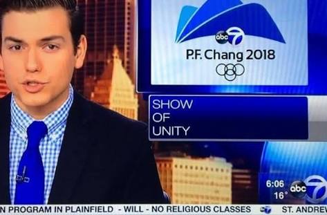 米ABC放送局が平昌五輪の特集の際に本来使うはずの平昌五輪のロゴではなく中華料理店「P.F.Chang