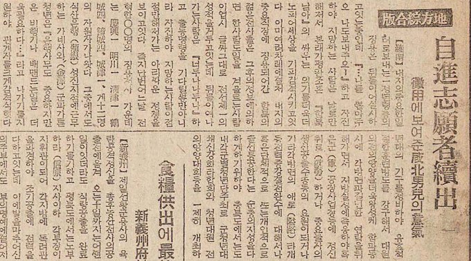 陸軍特別志願兵令(昭和13年勅令第95号)が朝鮮で施行されると全朝鮮で採用を願う血書嘆願が続出し、その種の報道が多数残されている。これも当時の民意の一つだったはずだが教科書に掲載されることは無い。左傾学者が続出するのも無理もない話だと自分は考えている。