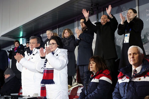 아베의 부적절한 행동은 계속되었다. 남과 북, 해외의 절대다수의 동포가 축하하고 IOC는 물론 세계인들도 크게 박수를 보내는 남북단일팀이 입장할 때 그가 보인 무례는 용서할 수 없다. 모두가 기립해서 마음으로 환영의 박수를 보내는 자리에 미국 부통령 펜스와 함께 의자에 가만히 앉아서 박수조차 치지 않는 모습을 연출했는데 무엇을 보여주고자 한 것인가. 왜 온 것인가.