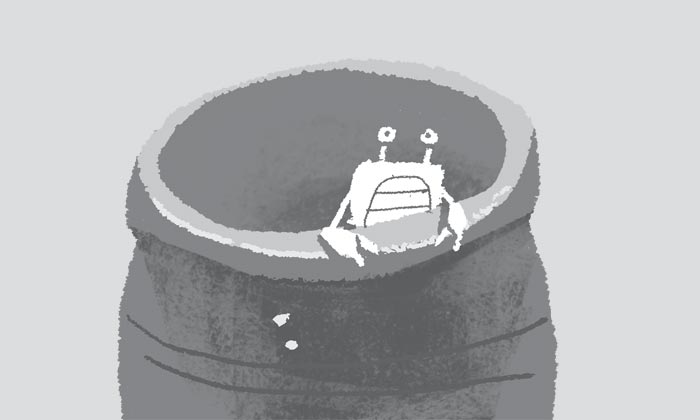 韓国人の恥ずべき習性を風刺したことわざに「かめの中のカニ」というものがある。かめに何匹かのカニを入れると、互いに先に外に出ようと暴れ回る。しかし結局は1匹も外に出られない。下にいるカニが先にはい上がろうとするカニを引きずり落とすからだ。