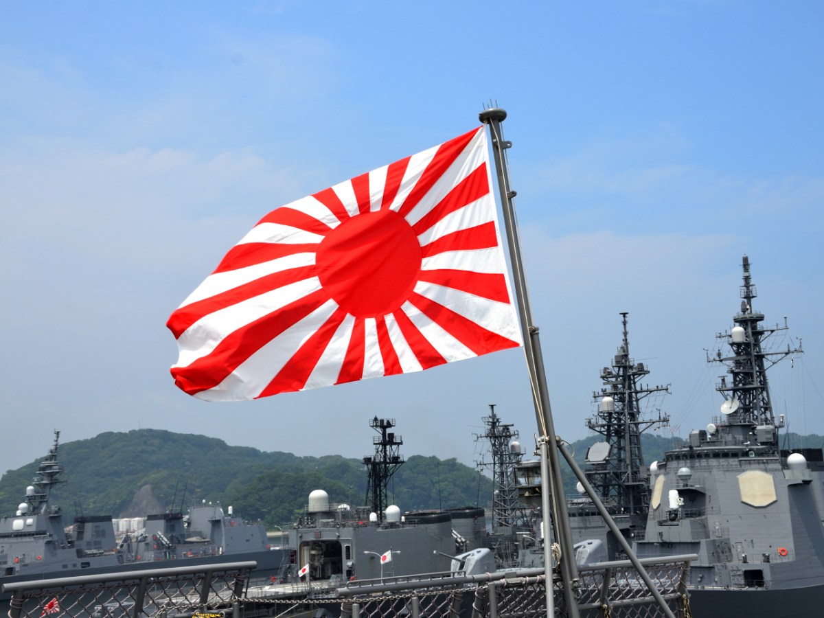日本:在日米軍のマークはすべて旭日旗を使っており、来日されたアメリカ大統領などもそのマークの前で演説したりします。