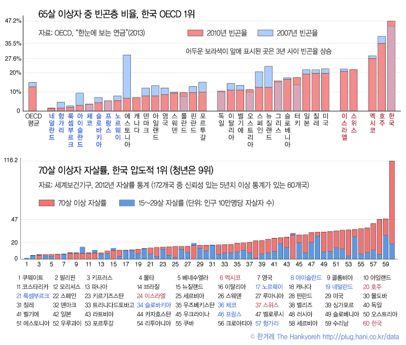 그리고 한국 자살률은 주로 노인들에게서 나타난다