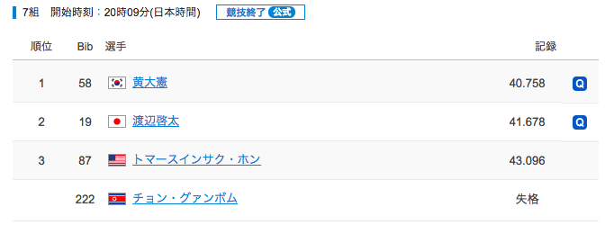 北朝鮮の転倒も、巻き込まれた転倒も、1位を取らせない様に誰かが犠牲になれる。操作しやすい競技に思えてならない。
