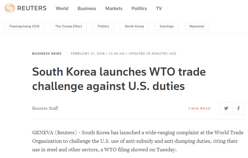 F-15やF-16の整備費用、サードの設置費用、米軍駐留費など未納分含め無慈悲な徴収と大幅な値上げ。それを拒否して米軍の退去要請まで観たい。「(速報)韓国、WTOに米国を提訴」