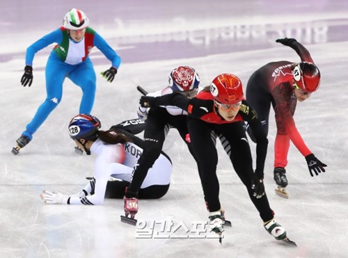 20日、江陵アイスアリーナで行われた平昌冬季オリンピック女子ショートトラック3000メートルリレーで、韓国のキム・アランがキム・イェジンを押し出す時に転倒している。 平昌(ピョンチャン)冬季オリンピック(五輪)女子ショートトラック3000メートルリレーで中国代表チームが失格判定を受けたことに対し、中国で怒りの声が高まっている。