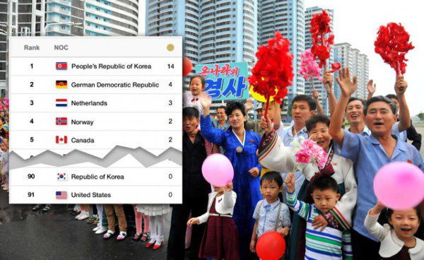面白いね。>>1おいおい・・・北朝鮮のメダル獲得数は0だぞ。