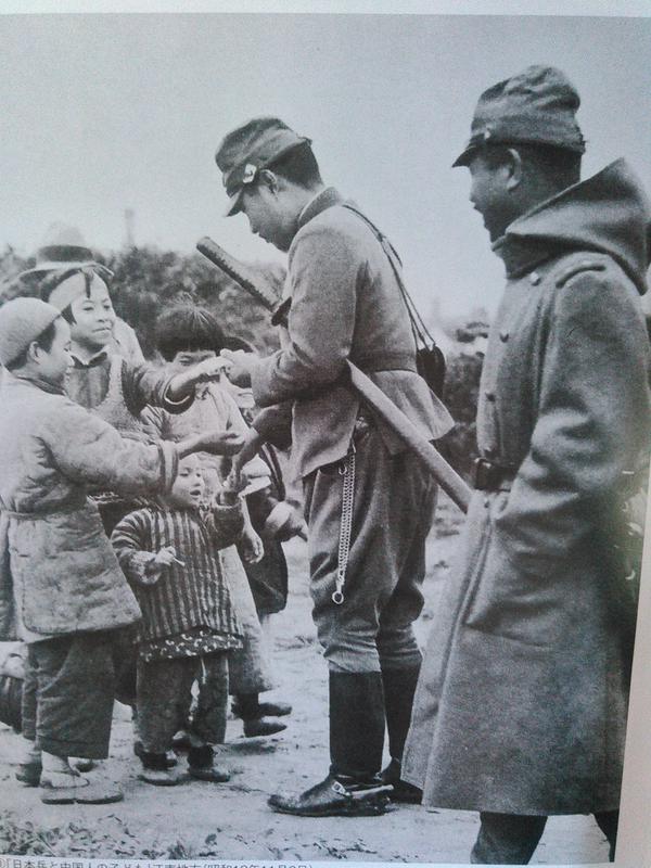 南京市民に食糧や菓子を配る日本兵>>1