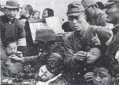 疫病防止のため南京市民に予防措置を施す日本の衛生兵。>>1