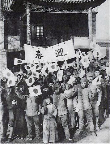 1938年 中国人の子供や大人と共に正月を祝う日本兵。>>45