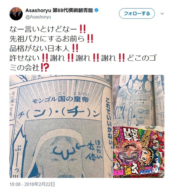 怒ってんのは朝青龍だけじゃなくて、一般の在日モンゴル人も大使館も抗議してんだよ。